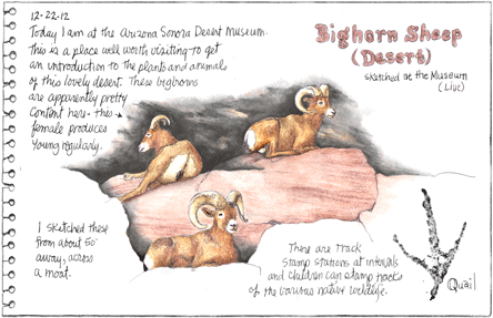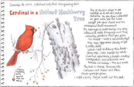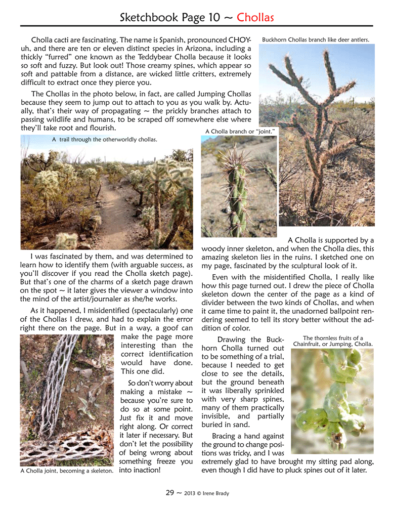 Each sketchbook page in the series of twelve shown above is accompanied by a tutorial of three to five pages. Every section starts with my photos of the subject and its surroundings so you can visualize the challenge. For the Cholla's five pages, I began the tutorial instructions with drawing tips then continued on the following pages with watercolor pencil advice (the other tutorials cover only watercolor painting aspects).