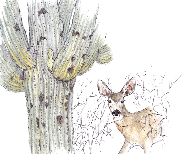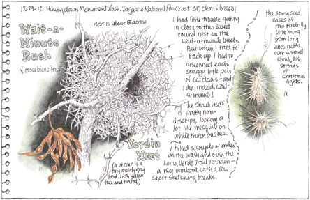 With tutorials for twelve different scenes ~ from the hike up the desert wash to the finished watercolor pencil painting (well, you'll have to find your own desert wash, I suppose, but at least photos are provided for these) ~ you can paint the exact picture I painted, using my sketch to practice on, or drawing your own if you prefer.