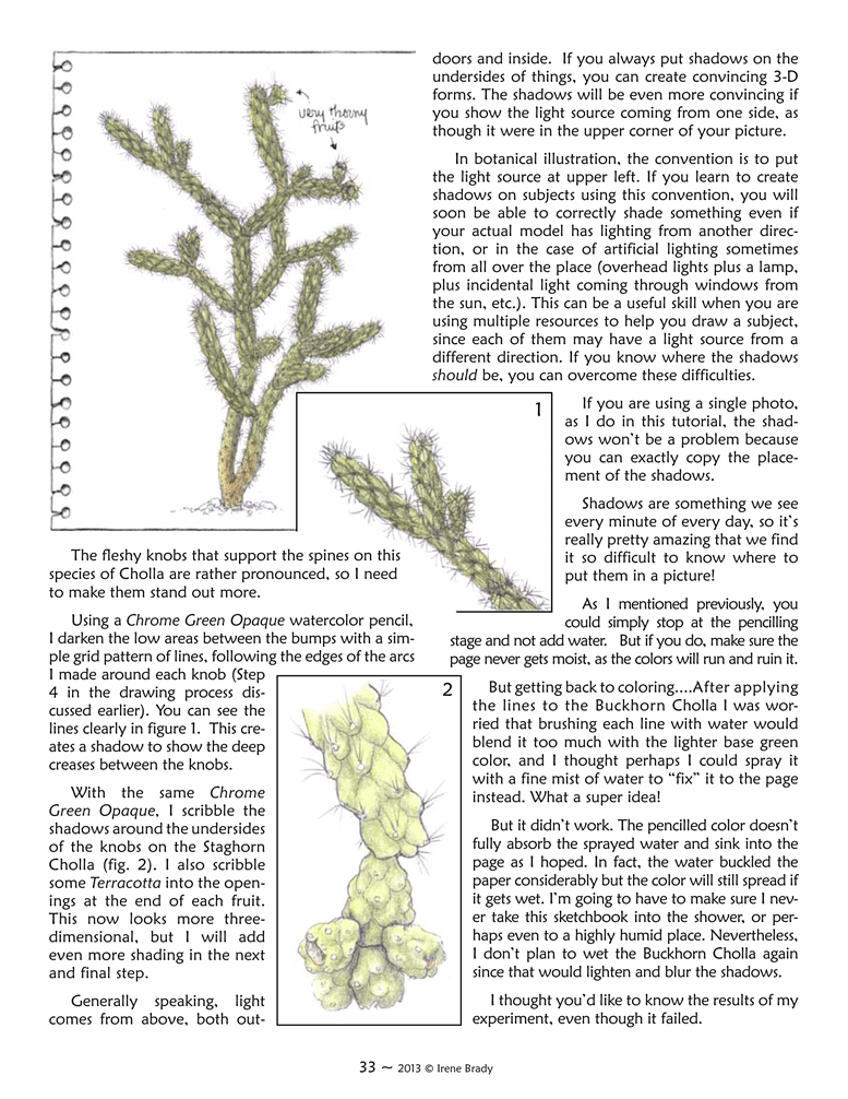 The third of the five pages (shown above) discusses adding shadows to make the cactus look 3-dimensional. The remaining two pages continue the instruction.